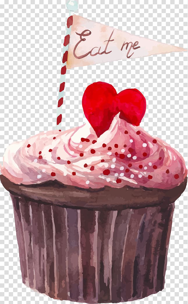 pink cupcake illustration, Cupcake Fruitcake Muffin, Watercolor Cupcakes transparent background PNG clipart -