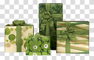 green floral gift box illustration, Gift , Green Present Box with Red Bow transparent background PNG clipart -